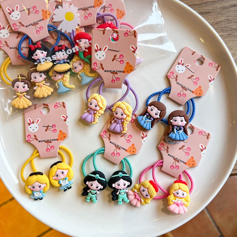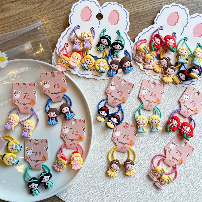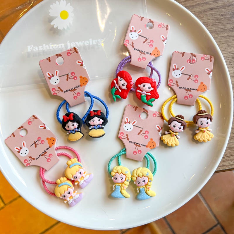 ((10 Pcs) Korean Version New Style Children's Color Hair Tie Girls Sweet Cute Cartoon Q Version Princess Hair Tie Little Girl Baby Tie Hair Rubber Band Hair Tie Korean Hair Accessories