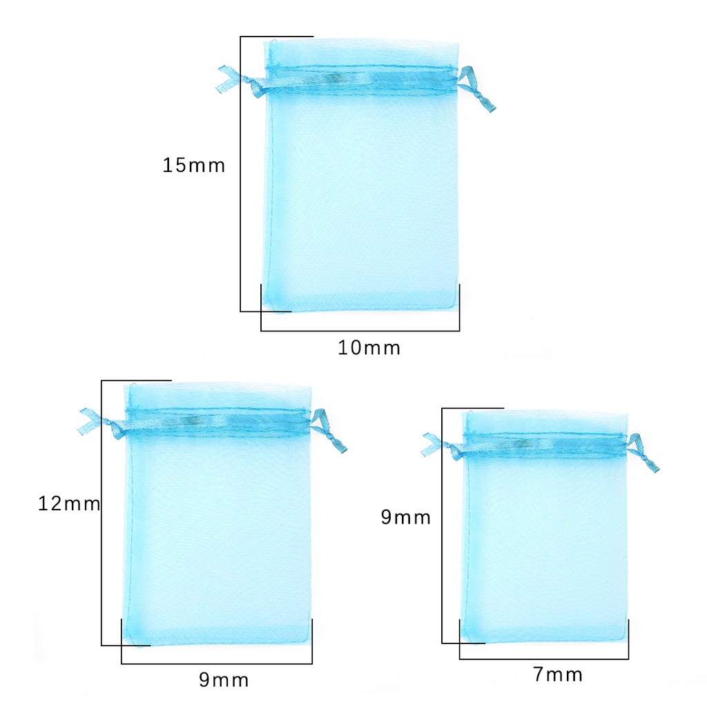 Size of these organza bags are just right for my needs. Except for the blue colour which is slightly darker shade than I expected, the others are a faint shade and the white even has a slight shimmer to it, which I like. Just wish the seller had pack them better as some of them have permanent creases due to being squeezed inside small packaging.