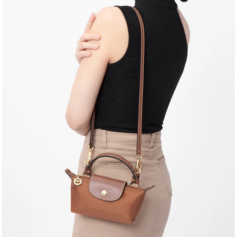 1Set Leather DIY Bag Strap Transformation For Longchamp Mini Tote Bag Shoulder Strap Set Buckle Crossbody Strap Bag Accessories Punch-free