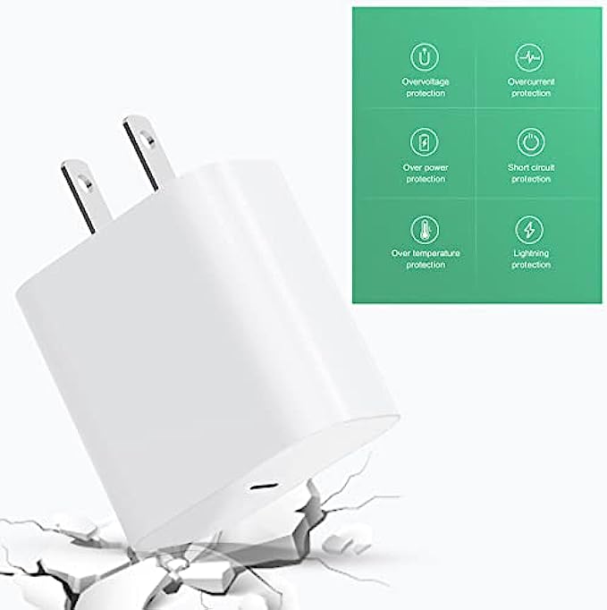 • ◆【Safety Protection】 With The Intelligent Chip Inside, 20W USB C Charger Offers Multiple Safeguards Automatically. ETL, FCC, CE, ROHS Certificated. Multi-Charging Protection will perfectly protect both your iphone/ipad devices also the brick/ cord against overheating, excessive current, short-circuit and overcharging. Apple MFi iPhone charging cable promises no warning message pops up. Exhaustive Protection While Charging.
