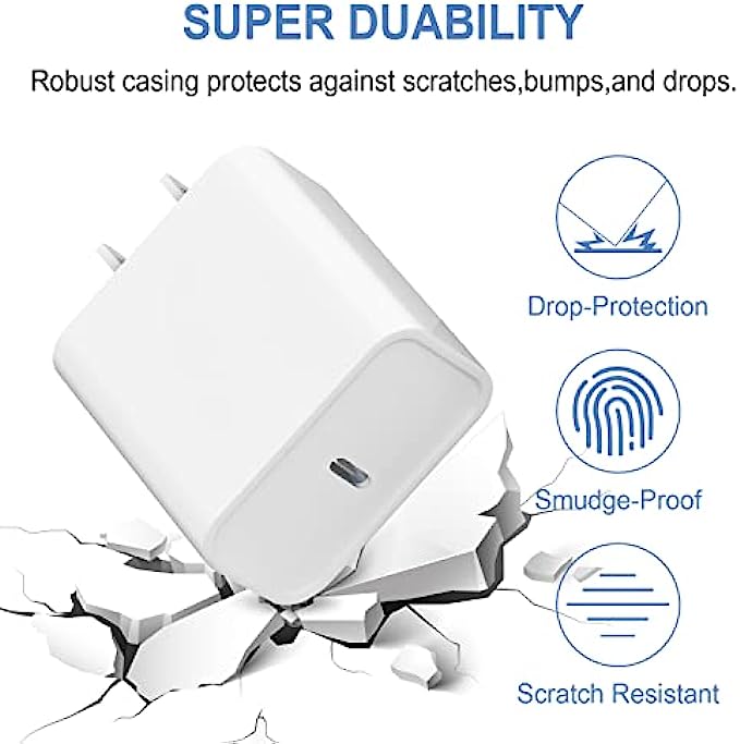 • 【20W USB-C Fast Charger】iPhone Type C Charger loaded with 20W of output power,iPhone 12 gets to 50% charge in <30 minutes, Providing super-fast charging speed for your iPhone device help to enjoy your intelligent life.
