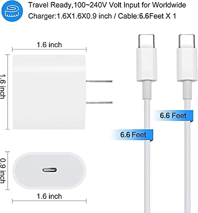 20W USB C Fast Charger for iPad Pro 12.9, iPad Pro 11 inch 2021/2020/2018, iPad Air 5th/4th 10.9 inch 2022/2020, iPad Mini 6 Generation 2021, PD Wall Charger with 6.6foot USB C to C Charging Cable