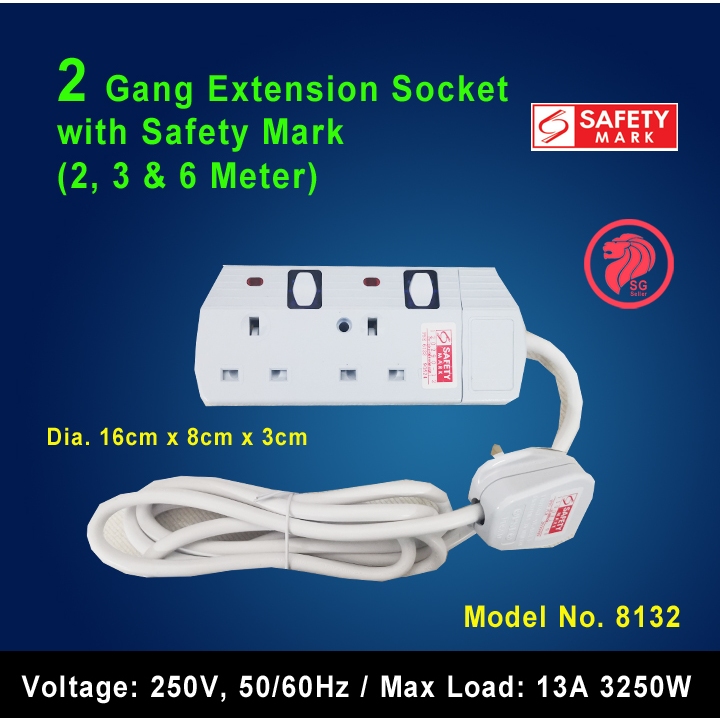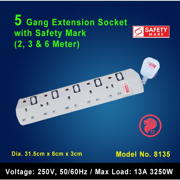 2/3/4/5/6 Gang Extension Socket with Singapore Safety Mark (2, 3 & 6 Meters)