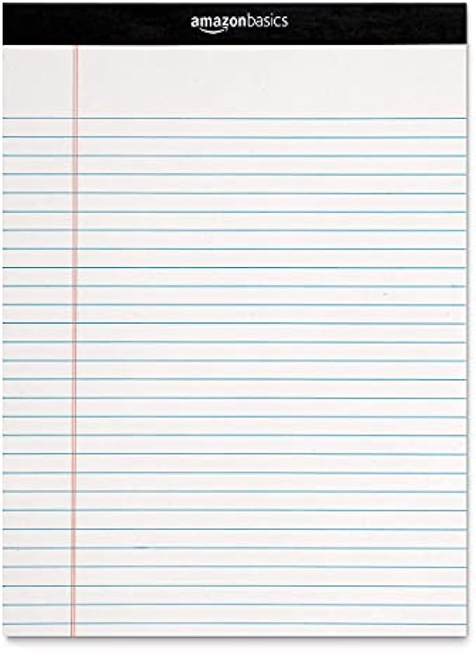Amazon Basics 50-Sheet Legal Note Pad, Wide Ruled, 8.5 x 11.75 Inches, White - Pack of 12