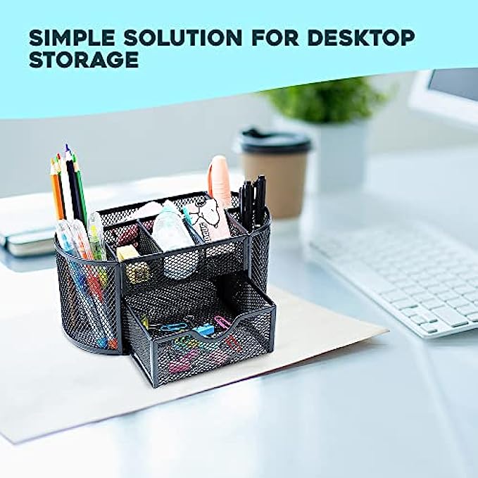 • Premium Quality- This mesh desktop caddy is made of high-quality metal and features rounded edges for increased safety. There is a flat bottom to avoid scratching to your desk or other surfaces
