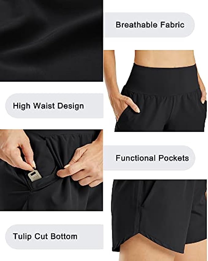 • √【Quick Dry Fabric】Lightweight fabric& No-Liner design features breathable and stretchy for comfy movement and ventilation.