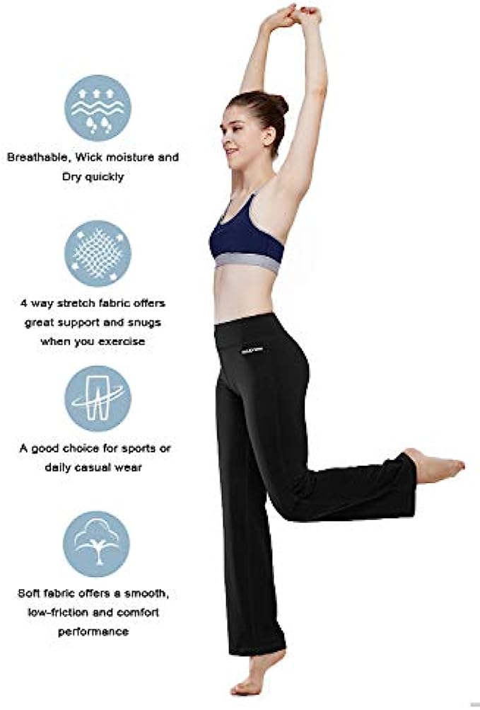 HISKYWIN Inner Pocket Yoga Pants 4 Way Stretch Tummy Control Workout Running Pants, Long Bootleg Flare Pants