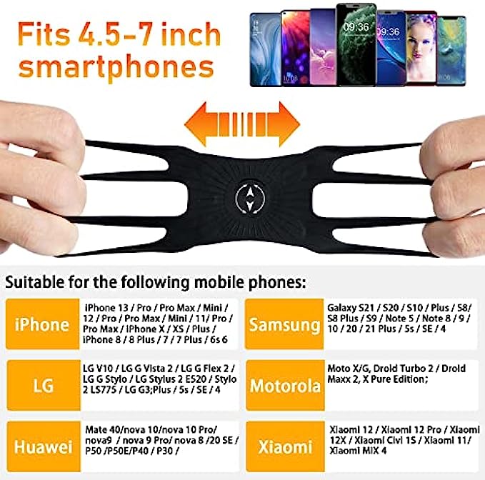 • Suitable for 4.5-7 inch smartphones. Such as: 13 Pro / 13 / 13 Mini / 12 Pro / 12 / 12 Mini / 11 Pro Max / 11 Pro / 11 / XS / XS Max / XR / 8/8 Plus, Samsung S22/S22+/ S21 / S10 / S10 Plus / S10e / S9 / S9 Plus and other smartphones.