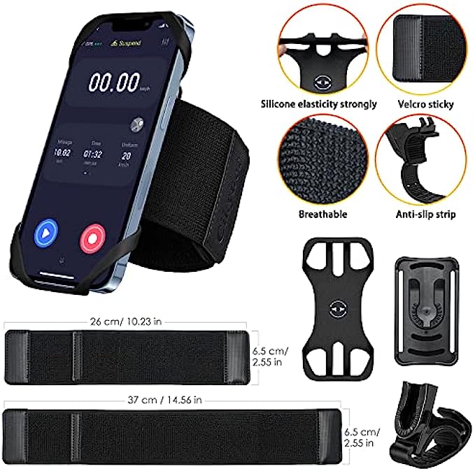 • 3 in 1 running phone wrist strap & bicycle phone mount. The sports armband for men and women has 3 functional applications, you can use it on your arm, wrist and cycling.