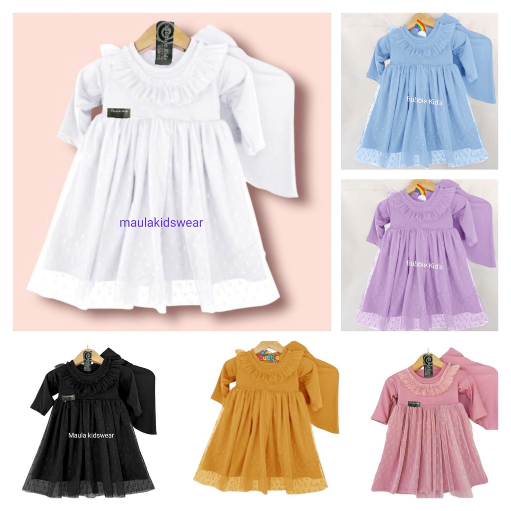 KATUN Gamis Hijab Baby Lace Tutu Tile Dotti (0-4 Years) Muslim Clothing Children Toddler Girls Plain Cotton Party mix