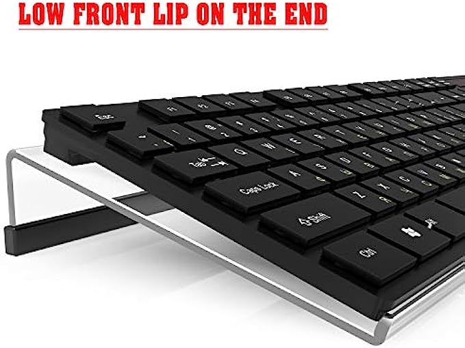 • Low Front Lip on the End - keyboard riser for desktop holds slimline keyboard, prevents it from falling off the PC keyboard stand when typing.