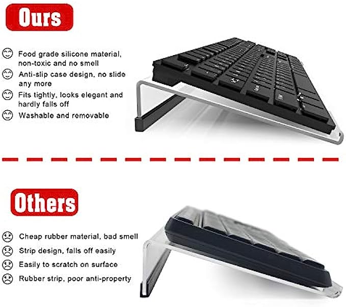 • Ergonomic Design - tilted keyboard stand raises flat keyboard at the right angle and height, a slant improves neck shoulder wrist issues and body posture by taking away the stress, makes typing more easier and comfortable.