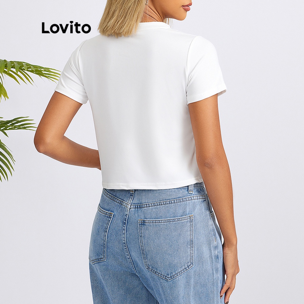 Lovito Casual Plain Crew Neck Basic Tshirt for Woman L18X101 (White/Pink/Blue/Black)