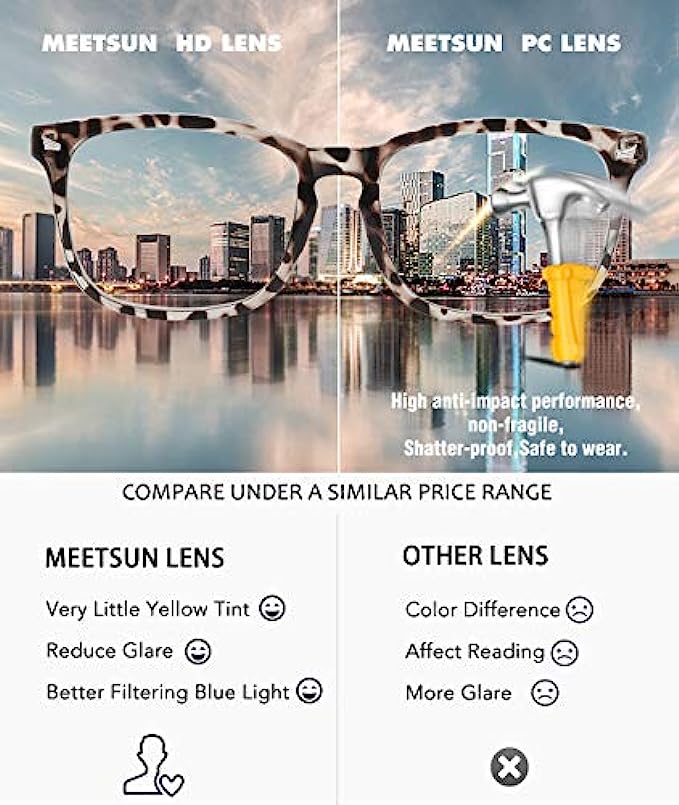 MEETSUN Blue Light Blocking Glasses, Anti Eye Strain Headache (Sleep Better),Computer Glasses UV400 Transparent Lens