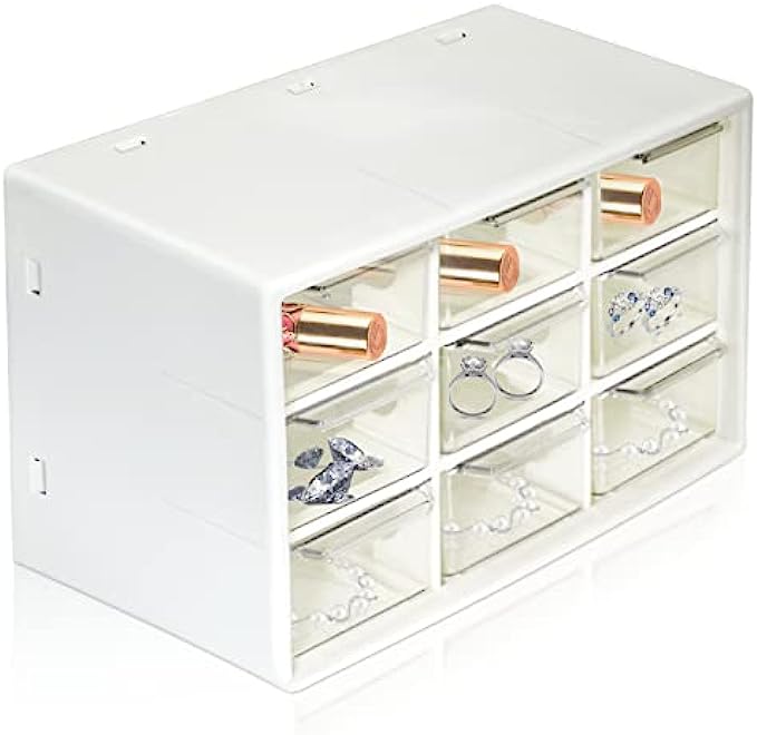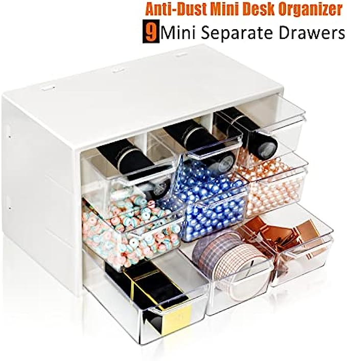 Mini Desk Organizer with Drawers, Office Supplies and Jewelry Storage Case 9 Drawers