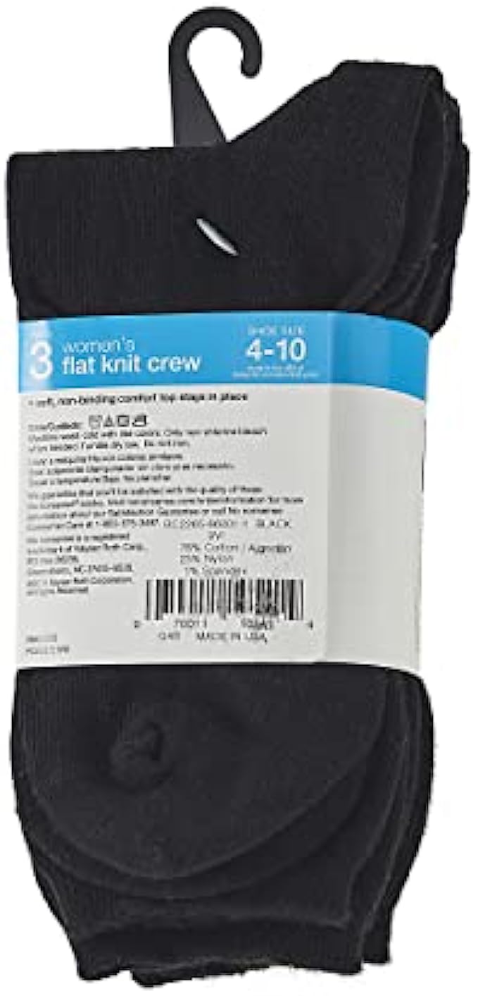 3 pair pack; flat knit crew socks