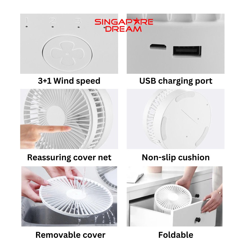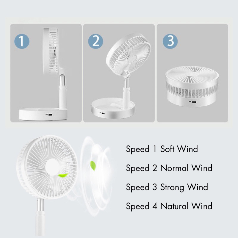 Portable Folding Fan Foldable Height Adjustable Tripod 7200mAh Mini USB Rechargeable Operated Fan
