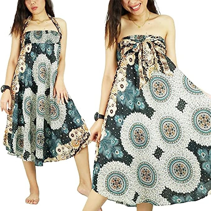 PumPumpZ Bohemian Gypsy Long Skirt for Women Hippie Boho Print Maxi Dress for Beach Dance Yoga. US Size 0-16