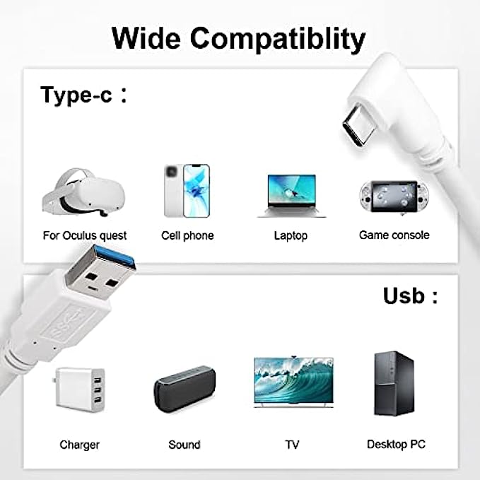 • Perfect for Oculus Quest 2: Match quest 2 in color and design, it can perfectly connects the Quest / Quest 2 to the gaming PC, so that you can play all Oculus Rift apps and Steam VR games.