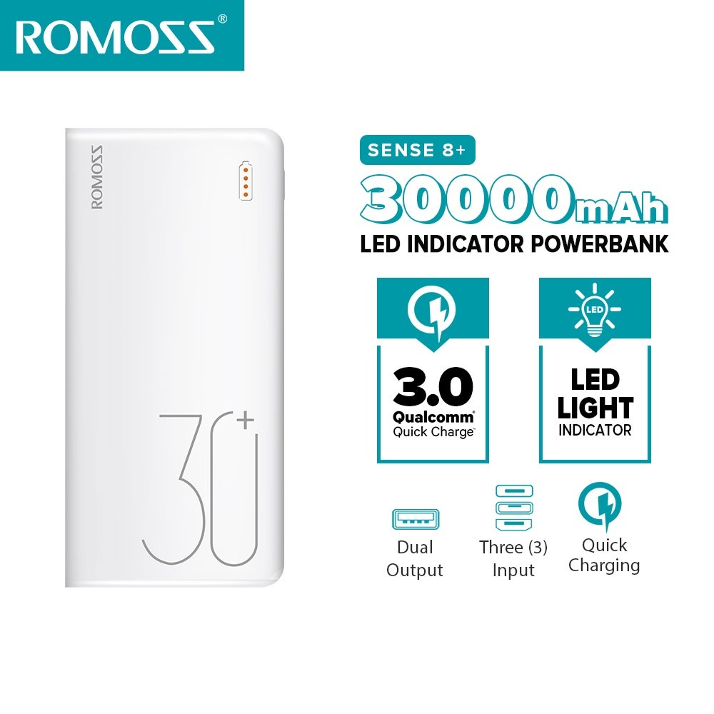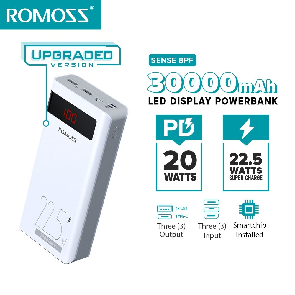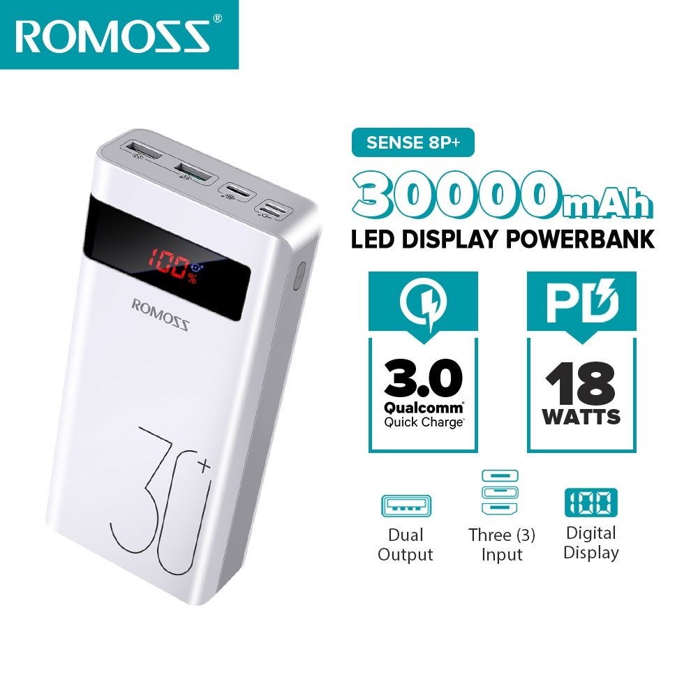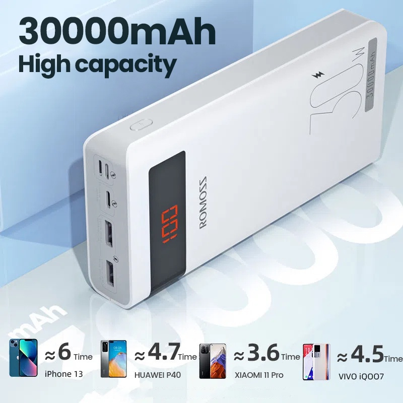 Romoss 30000mAh Powerbank Original Fast Charging PD Portable Charger Phone Battery Portable Source