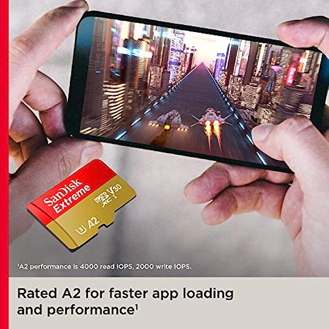 SanDisk 128GB Extreme microSDXC UHS-I Memory Card with Adapter - Up to 160MB/s, C10, U3, V30, 4K, A2, Micro SD - SDSQXA1-128G-GN6MA
