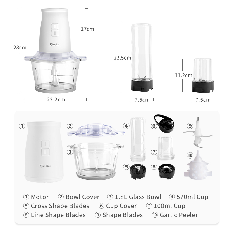 Simplus Meat Grinder 1.8L Glass Bowl Food Chopper Processor Mixer Mincer 4 Blades Stainless steel