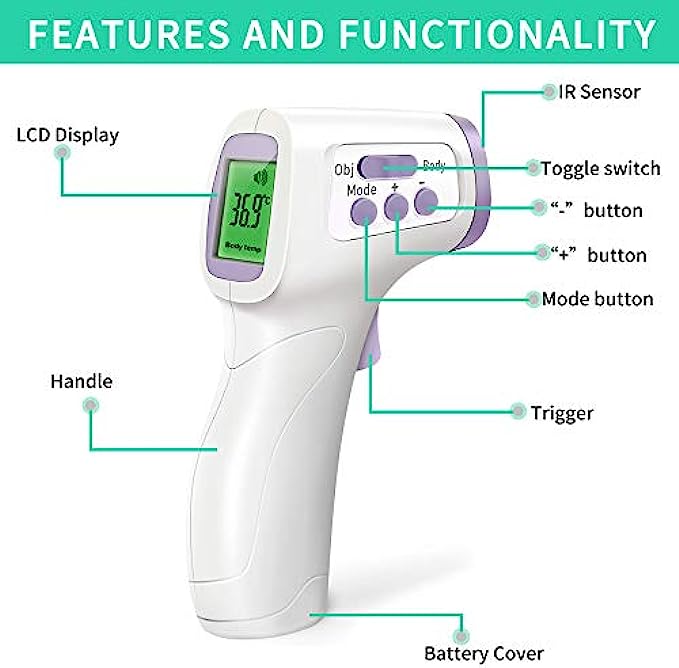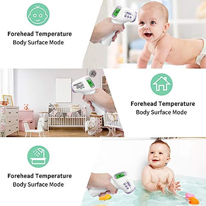 • ➤【Multifunctional】The forehead thermometer is designed for all ages, adults, babies and elders. In addition to measuring forehead, it can also measure room, object, and liquids temperature. Great choice for families, nursery, hotels, school.