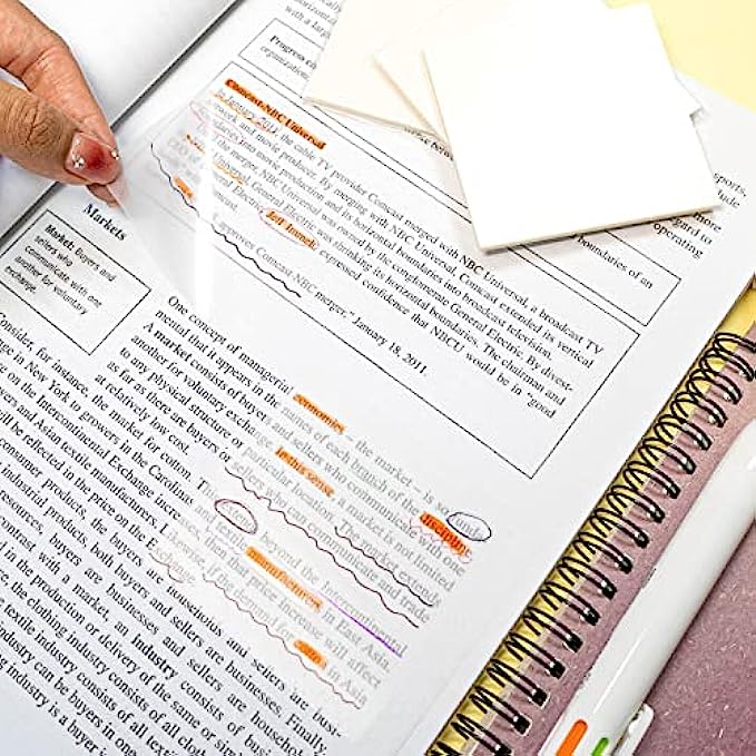 • Transparent Design: Upgraded see through sticky notes, lies flat and almost invisible, jut stick it on books or documents, annotate, highlight or trace directly, the underneath text will not be covered, protect your books instead of leaving permanent marks on them when taking notes.