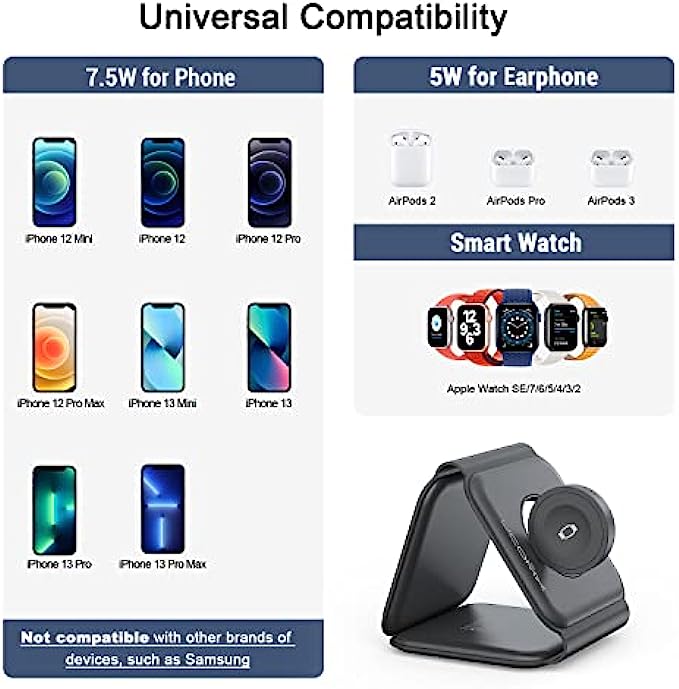 • Integrated Smart Apple Ecosystem: Many smart devices have become partners in our lives, and how to simplify the complexity to provide power for them has become very important. UCOMX NANO 3 in 1 WIRELESS apple charging station came into being. It can be charged efficiently, it is suitable for multiple scenarios or devices.Use the Equipped QC charger and cable to ensure that your smart devices are added huge energy power, revitalize it.