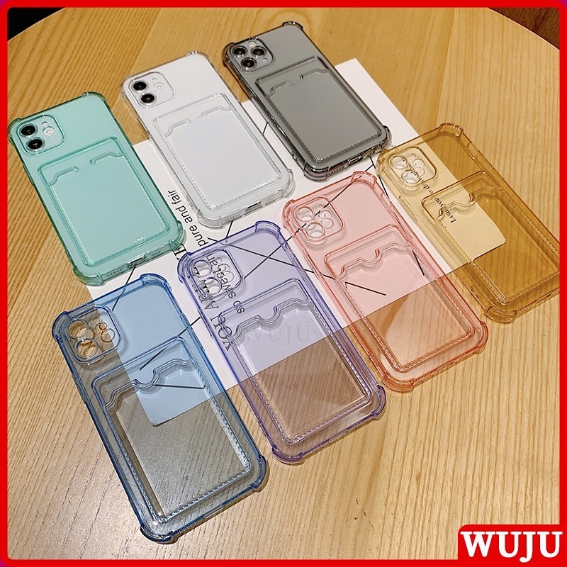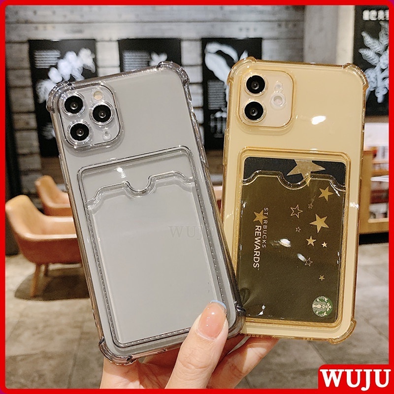 WUJU With Wallet Clip Card Holder Shockproof Clear Phone Case Compatible For iPhone 11 12 13 Pro Max X XS Max XR 7 8 Plus SE 2020 Soft Silicone Transparent TPU Cover Case