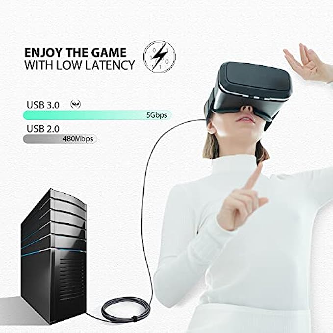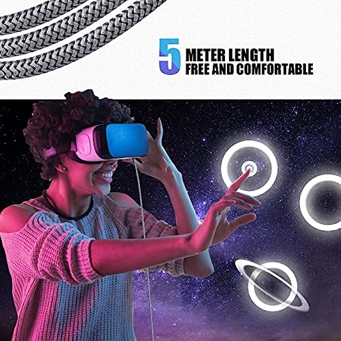 • 【Have fun with 16ft cable length】With this 5m link cable for oculus quest 2 you can have more freedom and space to enjoy the VR game without worrying that the wire is not long enough.