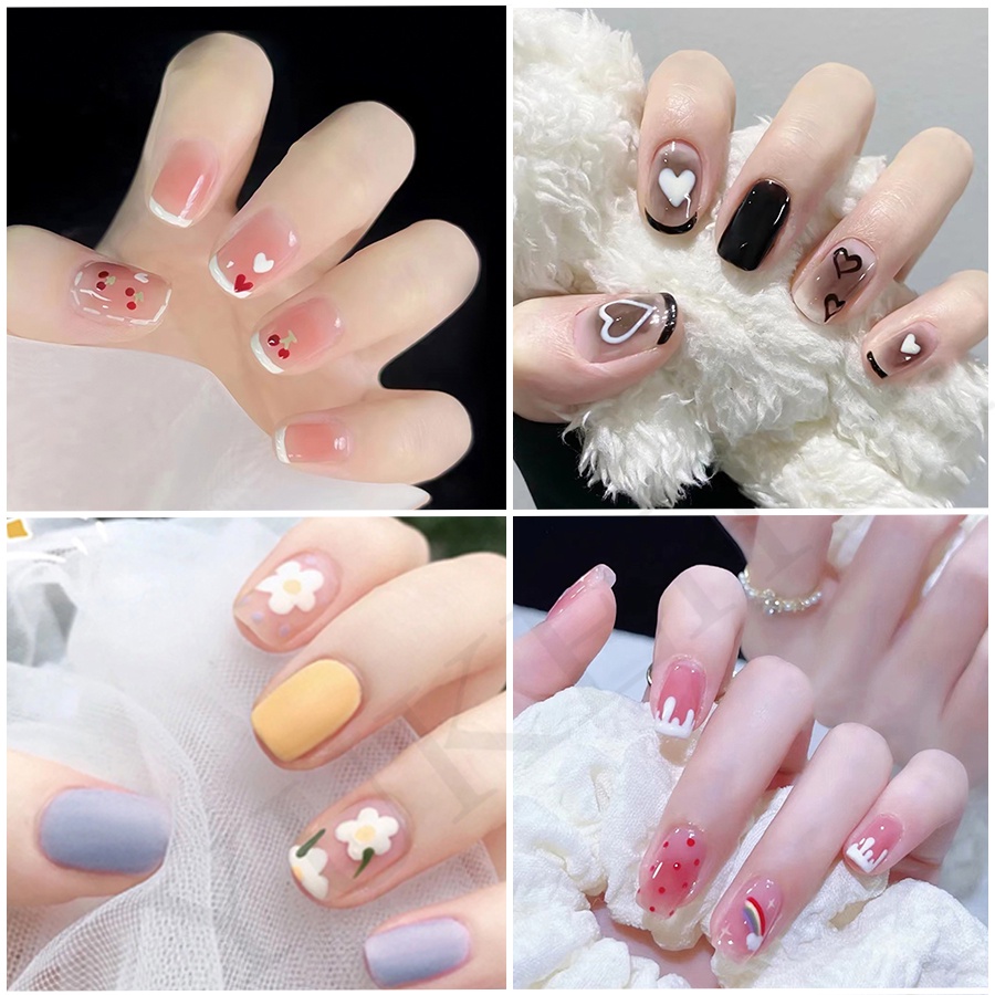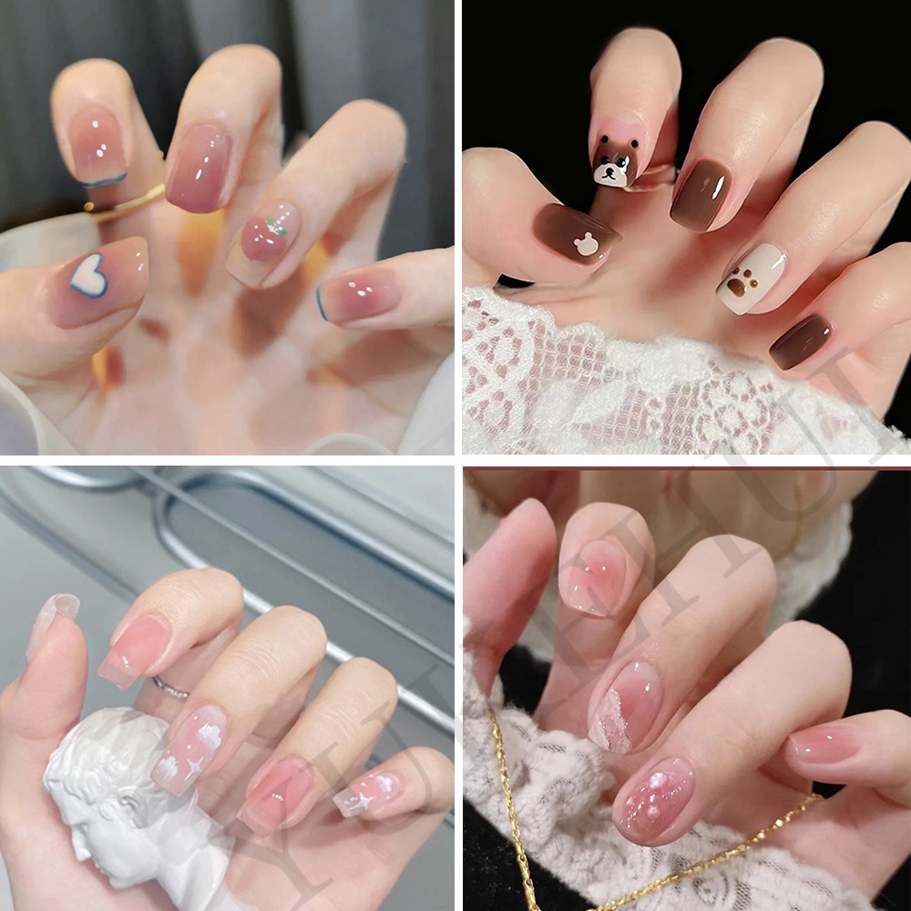 YKHMYB 24 pcs set with glue nails fake nails nail sticker long nail glue art false nails french nail fake nails with design manicure press on nails 假指甲 指甲貼 fake nails press on short nail nail press o