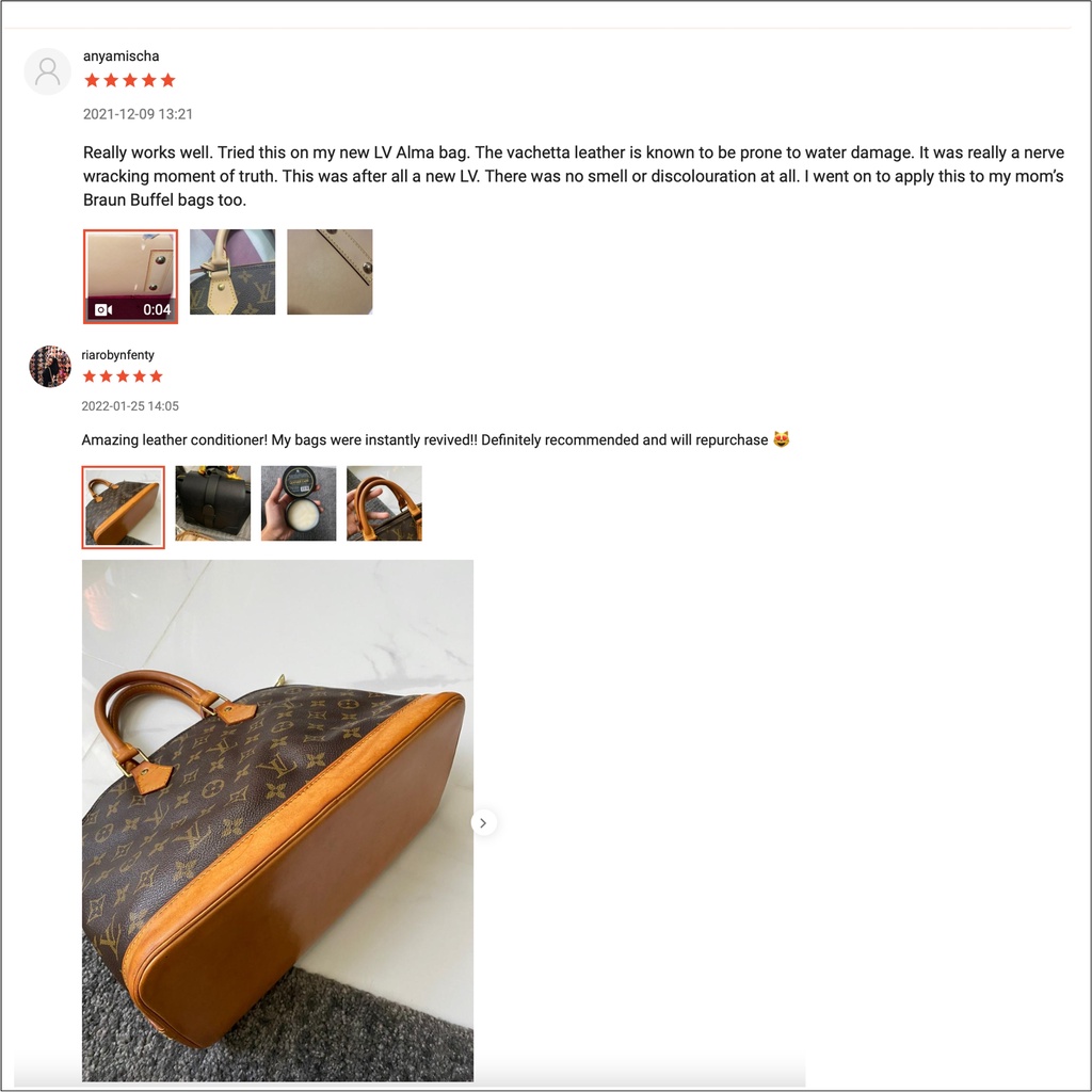 I spilled alcohol in my bag.. then i tried to search how to remove alcohol stain and one of it is leather conditioner. So I ordered quickly and the delivery was fast. I tried it once I recevied it. The stain was gone and the bag is shiny. I’m so happy I don’t need to pay for leather doc.