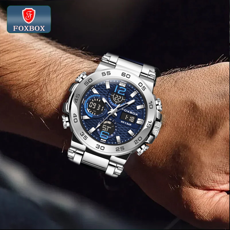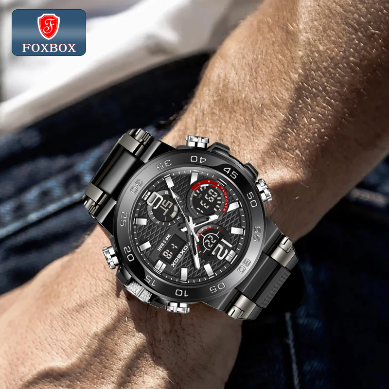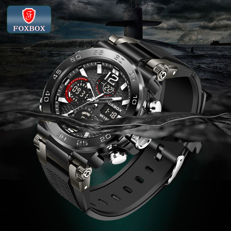 FOXBOX Watch original For Men LED Waterproof Sport Electronic Luminous Quartz Silicone Wristwatch Date Alarm LIGE Men Watches