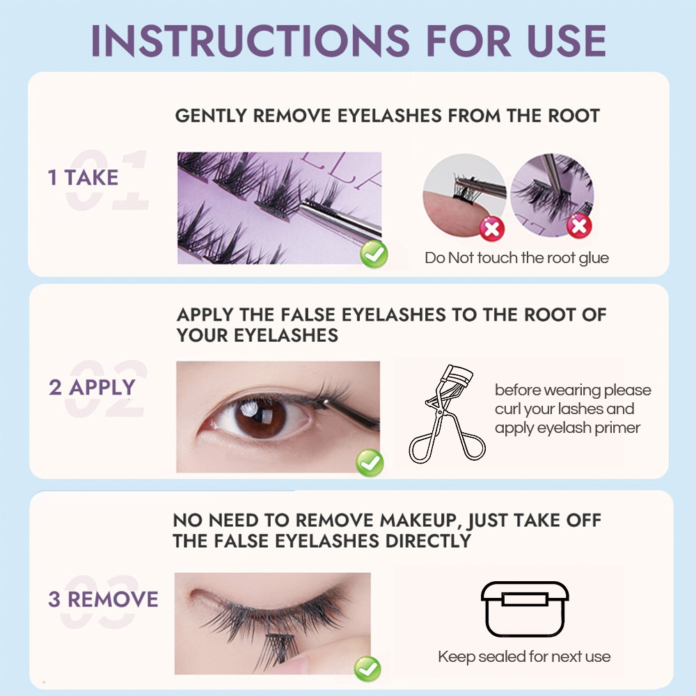 GECOMO Lazy Beginner Glue-free Eyelashes (Sample Trial Set) Self-adhesive Eyelash Sections