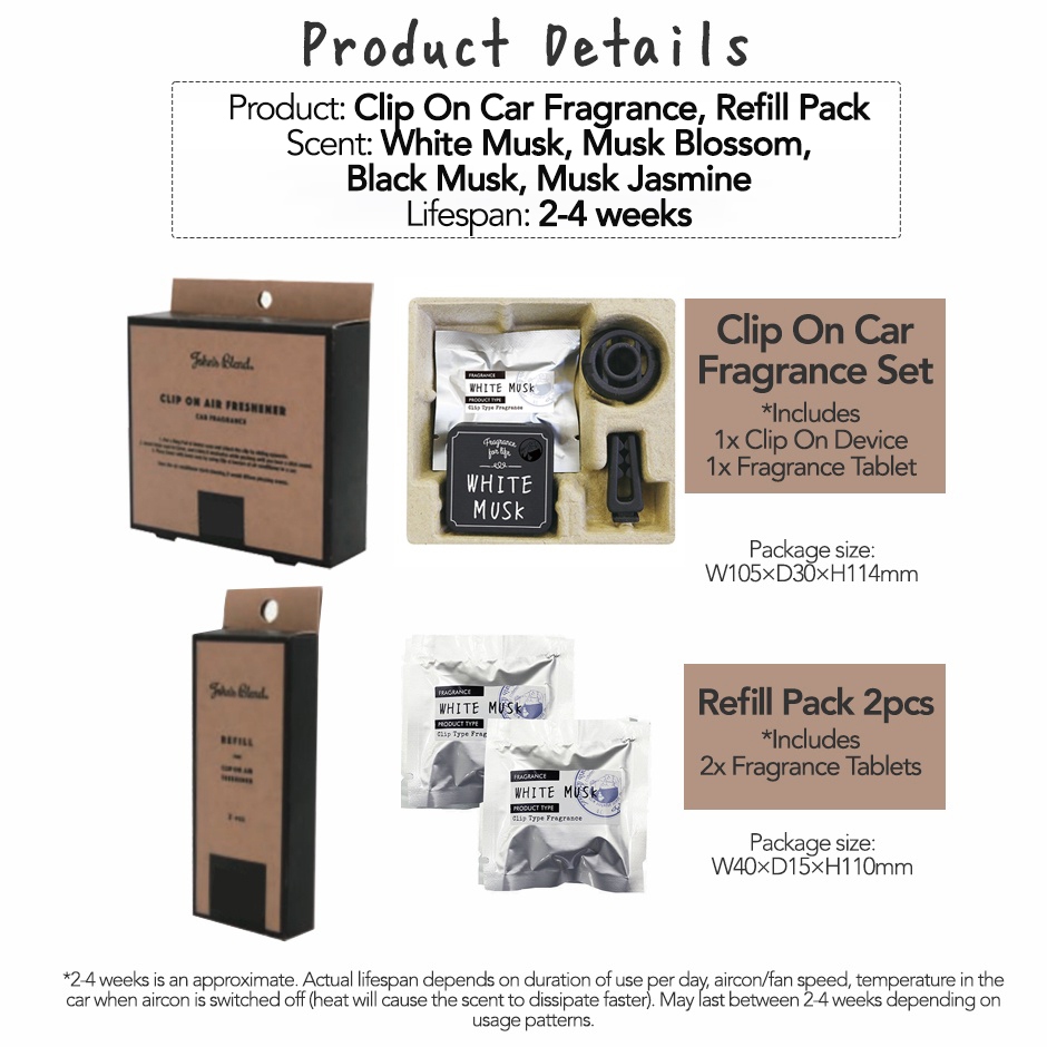 [Japan Import] John's Blend Clip On Car Freshener Fragrance Set / Refill 2pcs White Musk & Assorted Scents