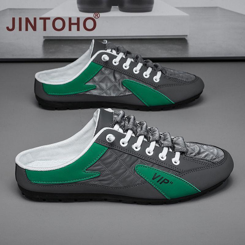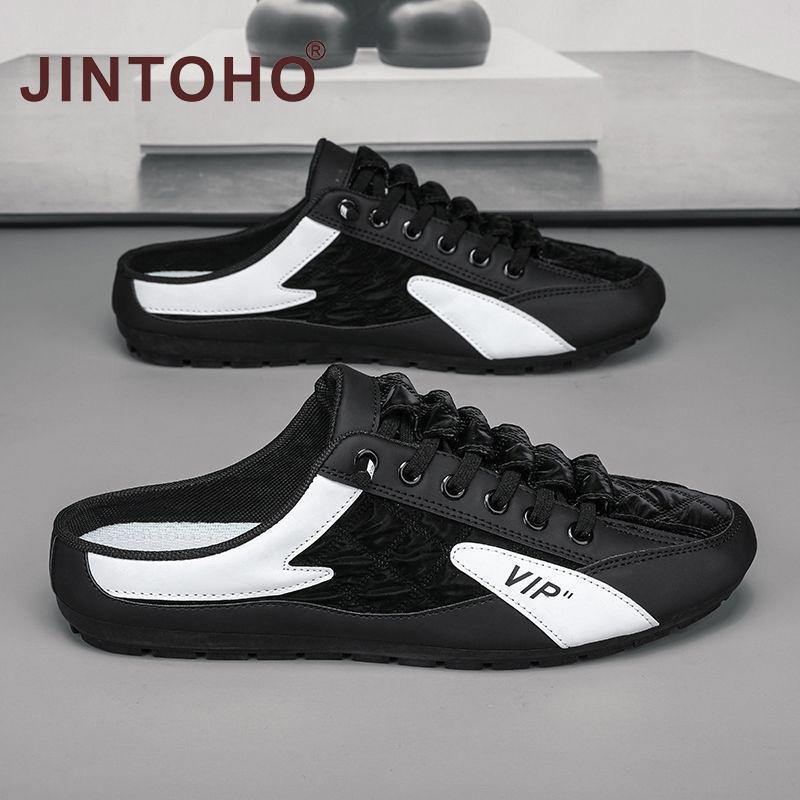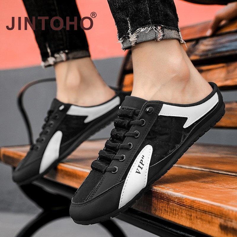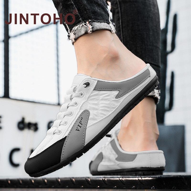 【JINTOHO】Summer Lazy Half-slippers Men Fashion Outside Mesh Sandals Non-Slip Rubber Sandal