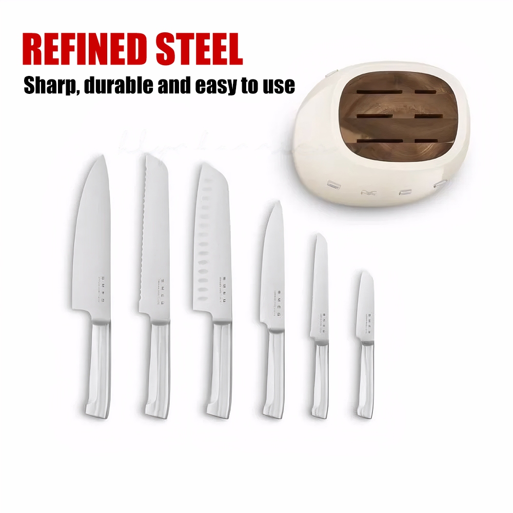 Knife Kitchen Household Seven-piece Retro Stainless Steel Kitchen Knife Set Cream Color厨房 刀