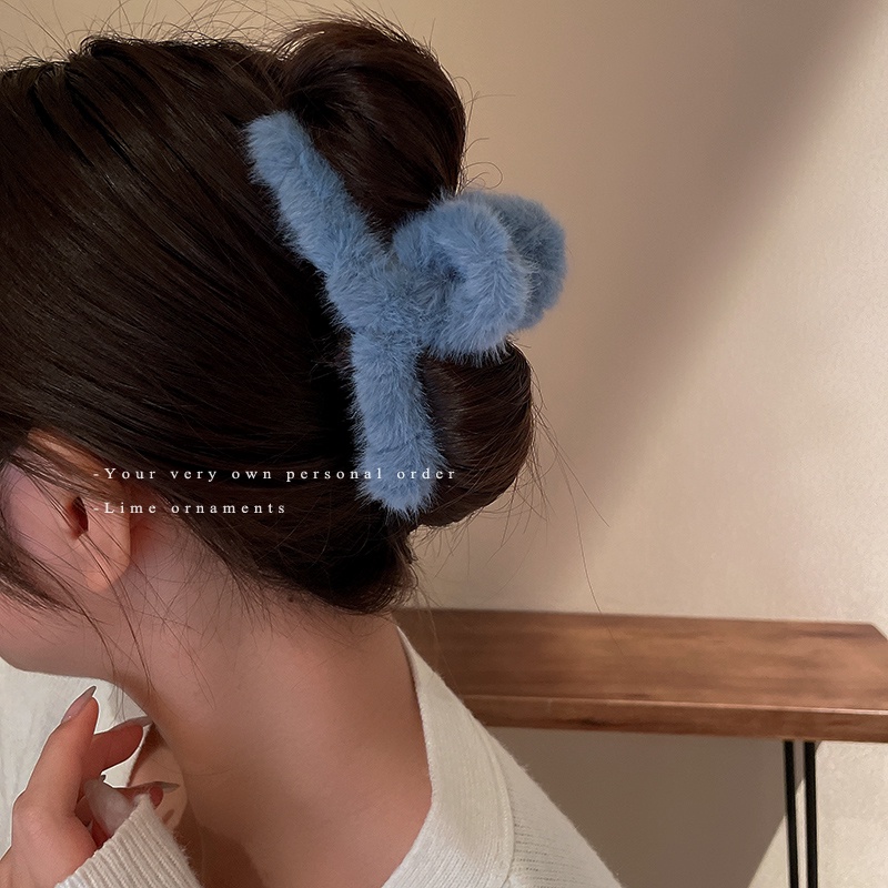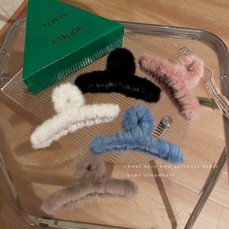 Korean Autumn Winter Plush Hair Clip Simple Solid Color Back Head Plate Hair Clip Female Sweet Girl Shark Clip Hair Accessories