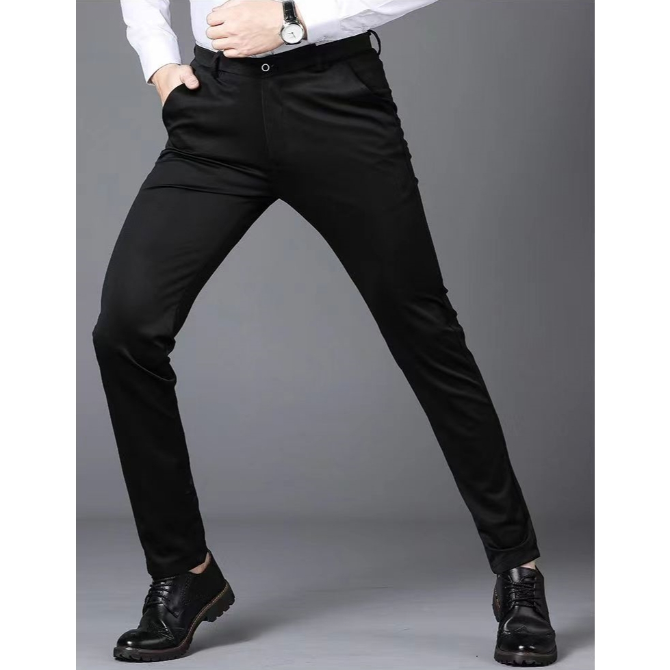 [Local Delivery] Men's Formal Suit Pants Non-ironing Stretchable Slim Fit Business Office Wear Plus Size Slack Casual Long Black Pant