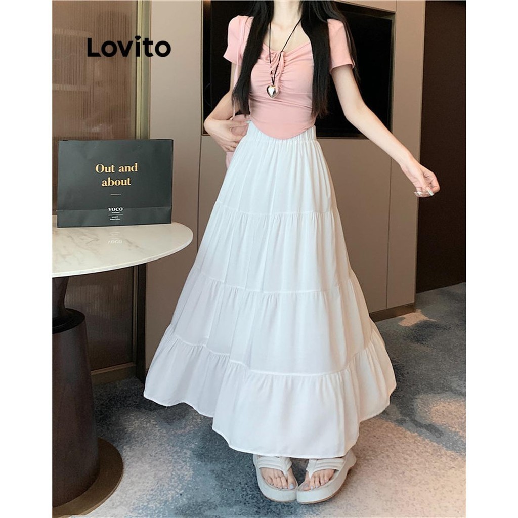 Lovito Casual Plain Structure Line Draped Skirts for Women LNE59445