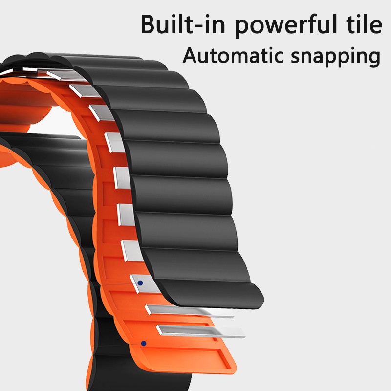 Material quality: good Compatible: For Apple Watch series 8 7 SE 6 5 4 3 2 1 iwatch 45mm 41mm 44mm 40mm 42mm 38mm Ultra 49mm Outstanding spot: ● High quality silicone. ● Soft silicone touch, comfortable to wear ● The inside of the strap has a newly upgraded magnet to fit the wrist and doesn't come off easily ● Waterproof, sweatproof, breathable, lightweight ● New, modern and durable appearance