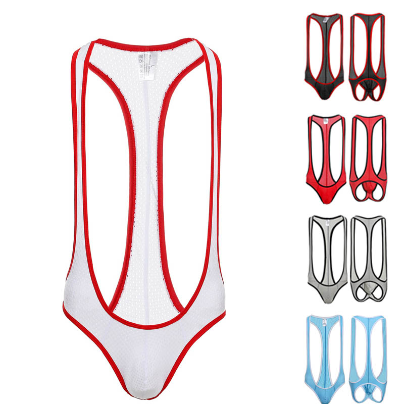 Men Jockstrap Leotard Elastic Mesh Underwear Jumpsuits Wrestling Singlet Bodysuit