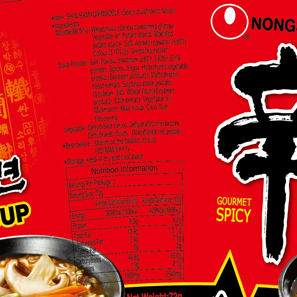 Nongshim Spicy Mushroom Shin Ramyun - 72g Cup [Korean]