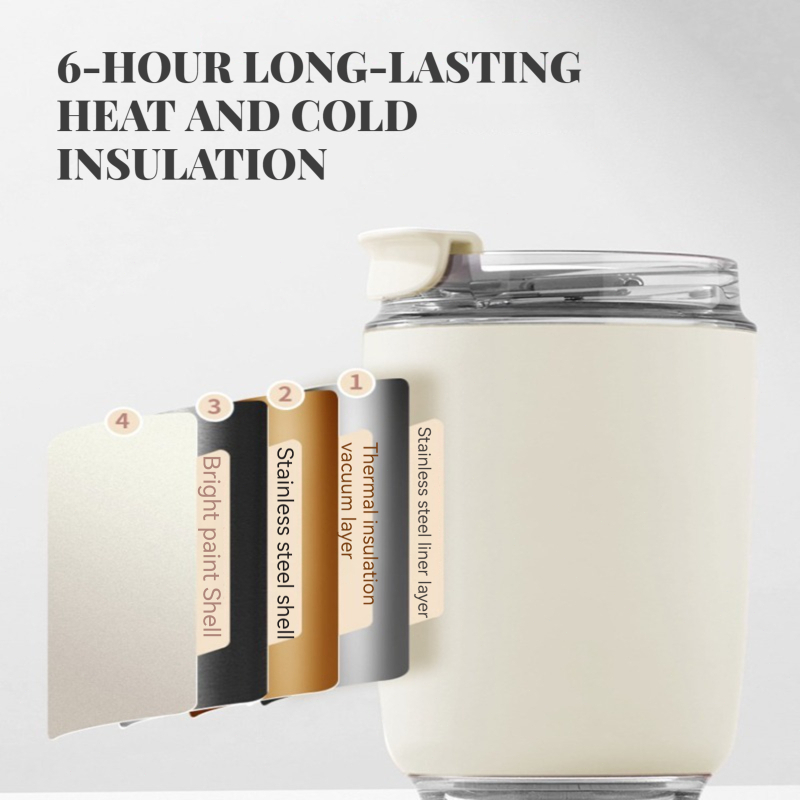 Quality:insulated Appearance:retro Performance:hot and cold Item is slim. Great for keeping in bags. Comes with liquid measurements inside the cup. Good for hot and cold drinks.
