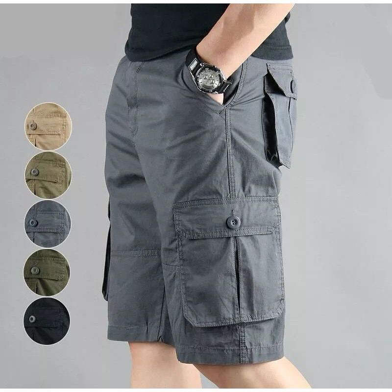 Short Pants CARGO Short Pants Multipocket Can Wear Waist Strap zip Breathable Pants 100% Cotton Casual Plain