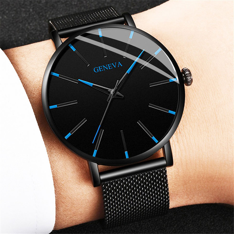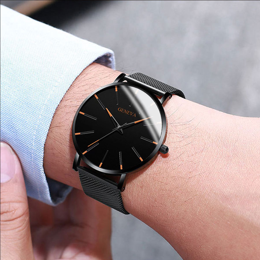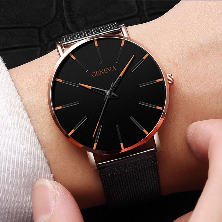 T Trendy Simple Mesh Strap Watch Men's Scale Quartz Daily Work Watch White Black New Style 2024