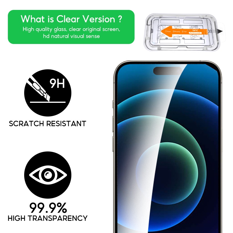 TBTIC For iPhone Screen Protector Tempered Glass 15 14 13 12 11 Pro Max Plus XR X Xs HD Matte Privacy Fingerprint Blueray Green Light With Auto Alignment Easy Install Full Coverage