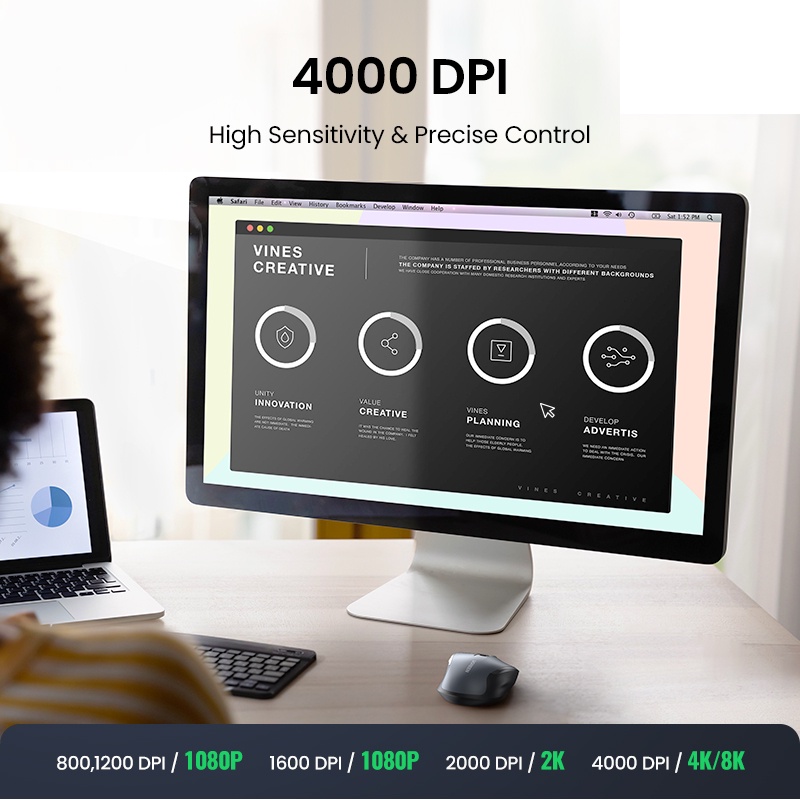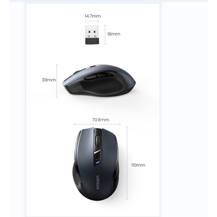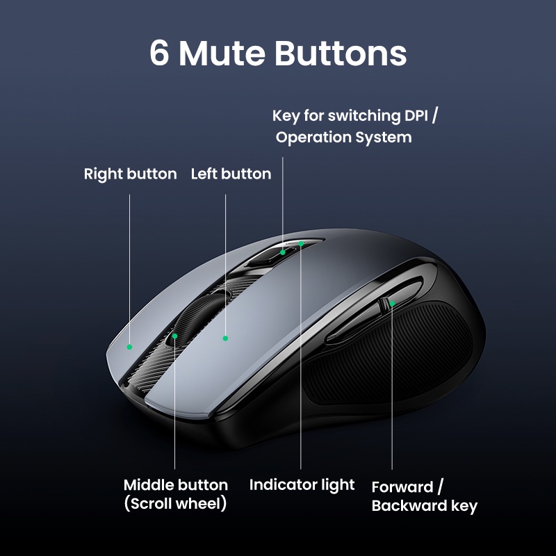 UGREEN Wireless Mouse 2.4G with USB Mini Receiver DPI Setting 4000DPI with 6 Silent Buttons 5 Level Ambidextrous for PC/Mac/Linux