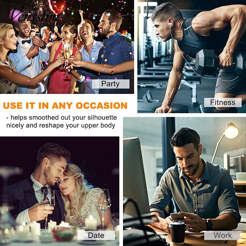 Vensslim Men Shapewear Slimming Body Shaper Compression Shirt with Zipper Tummy Control Waist Trainer Sweat Sauna Corset